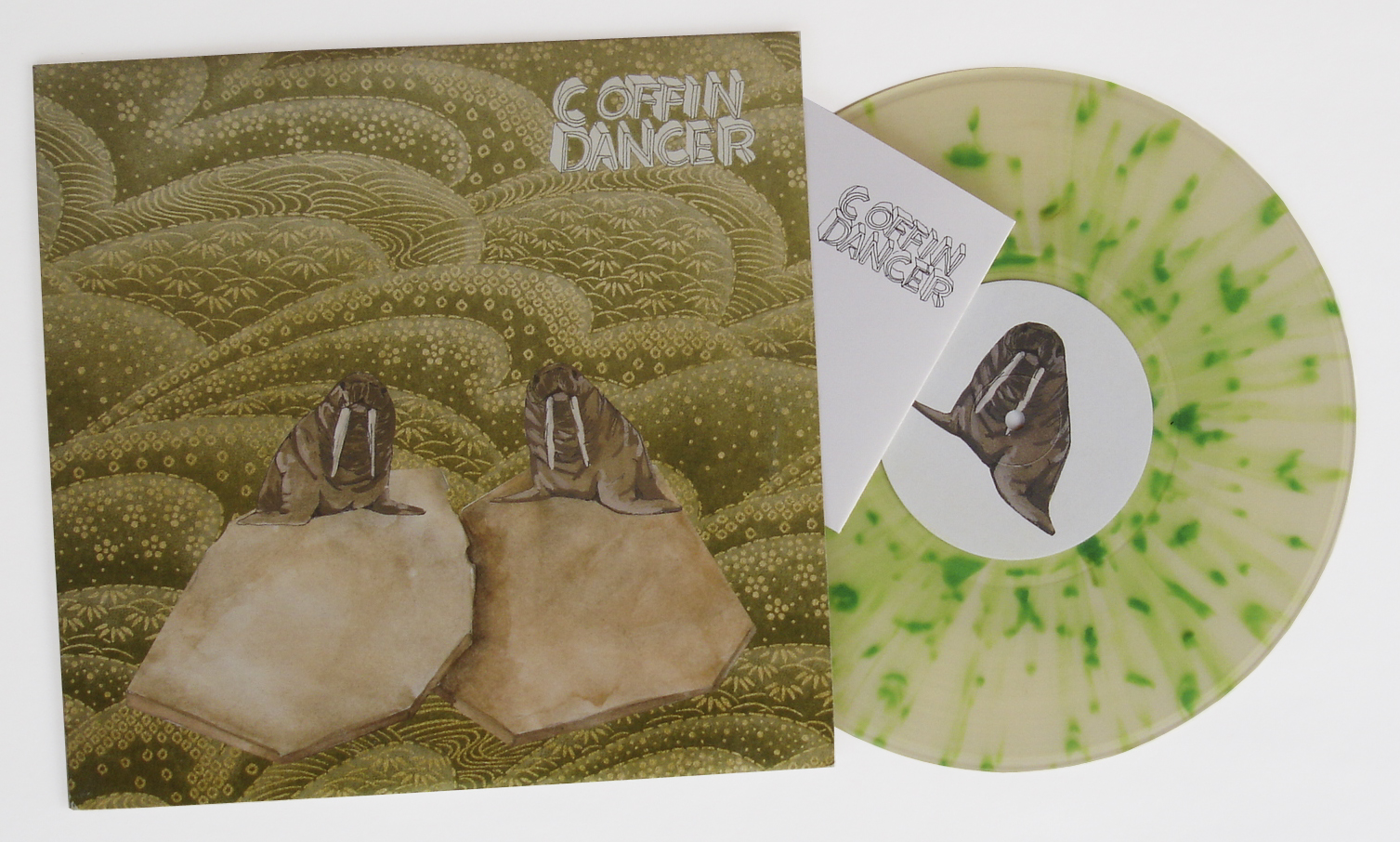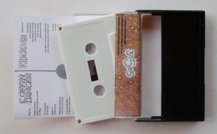 Kidcrash and Coffin Dancer Split Album, 2008 / Description: Each band released a song on each side of the record or tape. I used Japanese decorative paper and made all the drawings and type headings for this project / Skills: Photoshop and InDesign